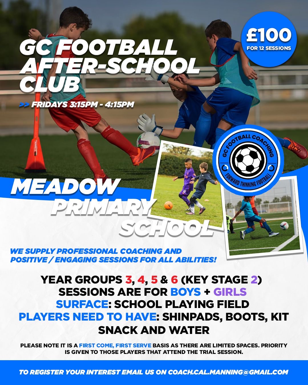 Football (Academy Soccer Skills) - Reception - Year 2 on Tuesday - currently full. Contact Ross Blair at ross.blair@hotmail.co.uk to be added to the waiting list.